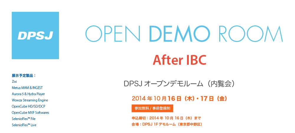 After IBC : DPSJ オープンデモルーム開催 10 月 16 日(木)・ 17 日(金)