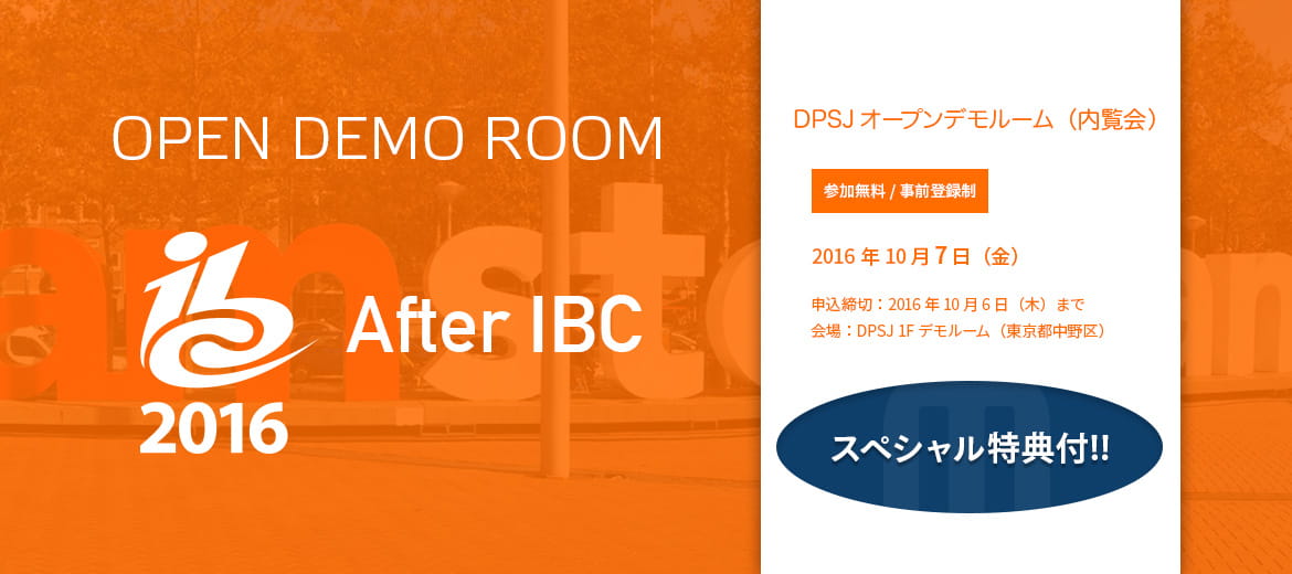 DPSJ オープンデモルーム <After IBC 2016> スペシャル特典付!