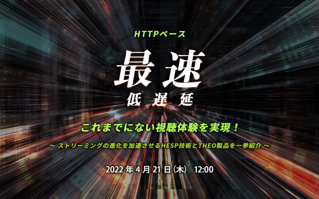 ウェビナー開催 : HTTP ベース最速低遅延でこれまでにない視聴体験を実現!〜 ストリーミングの進化を加速させる HESP 技術と THEO 製品を一挙紹介 〜