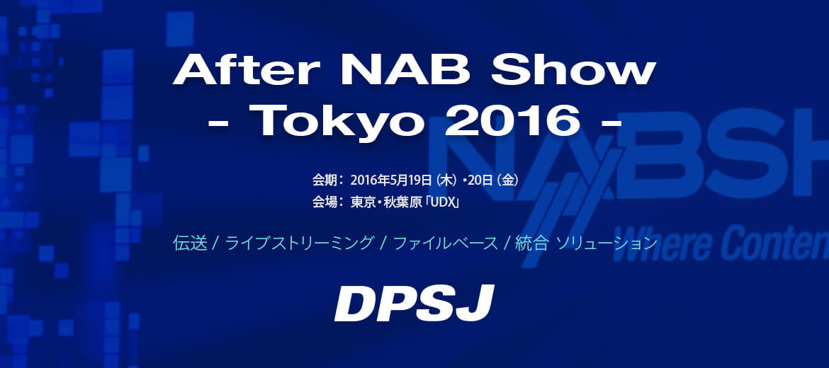DPSJ (日本デジタル・プロセシング・システムズ)は、After NAB Show - Tokyo 2016 - に出展いたします。