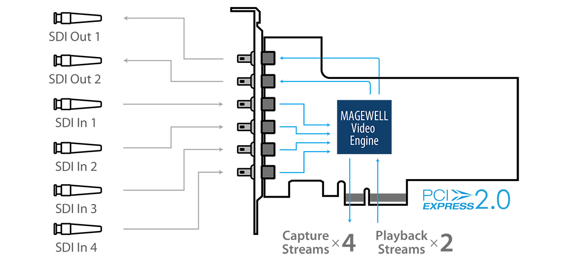 • 同時に 4 チャンネルの SDI (SD / HD / 3G / 2K)を入力キャプチャ