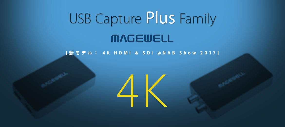 日本デジタル・プロセシング・システムズ株式会社(本社:東京都中野区 代表取締役:難波田 哲史 略称: DPSJ)は間もなく開催される 2017 NAB Show に向けて、Magewell 社(ブース番号: SU12813)がビデオキャプチャデバイス製品「USB Capture Plus」ファミリーへ、新たに 4K モデルが加わることを公表しました。フル解像度の 4K キャプチャ性能を備えた USB Capture SDI 4K Plus と USB Capture HDMI 4K Plus の 2 モデルが、USB Capture Plus ファミリーの新たな一員となります。