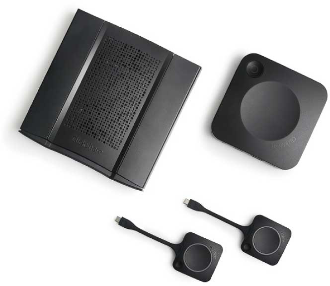 Magewell のプラグ&プレイが実現可能な USB Capture Gen2 デバイスにより、ユーザーは簡単かつ確実に HDMI または SDI ビデオ信号を Zoom、Skype、Temas、GoToMeeting 等の一般的なオンライン用会議ソフトへ組み込めます。Barco の Clickshare Conferene は、リモートコミュニケーションと、使いやすく常識に囚われないワイヤレスコラボレーションを組み合わせ、あらゆるオンライン会議で革新的な体験を可能にし、USB オーディオ・ビデオ周辺機器にワイヤレスで接続可能で、よりハイブリッドな会議を実現します。