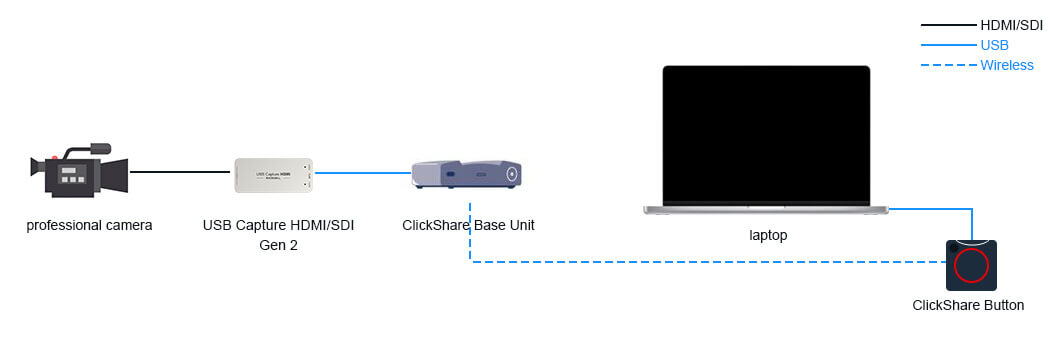 多くのお客様は USB 接続をサポートしない AV 機器に多額の投資をする傾向があります。しかし一方では業務用カメラが提供する優れた品質と、高度な画像制御を望んでいるお客様も存在します。当社の USB Capture デバイスとClickshare Conferenceの 2 製品を組み合わせることで、ユーザーはこれら AV ソースを活用しながら、ワイヤレスでハイブリットな会議の体験を楽しむことができます。Clickshare アライアンスの一員として、Barco と提携することで、インテグレーター、販売代理店、エンドユーザーは自信を持って私達の共同ソリューションを提案、選択して頂けます。Magewell の USB Capture デバイスは、お客様が ClickShare Conference で使用できる高品質なビデオ・オーディオソースのエコシステムを拡大します。
