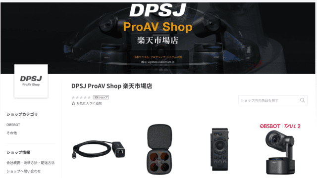 弊社 DPSJ は楽天市場「DPSJ ProAV Shop 楽天市場店」にて弊社取扱のプロ AV 機器を中心に販売を開始しました。これにより、お客様がより便利にオンラインで弊社製品をご購入いただけるようになります。