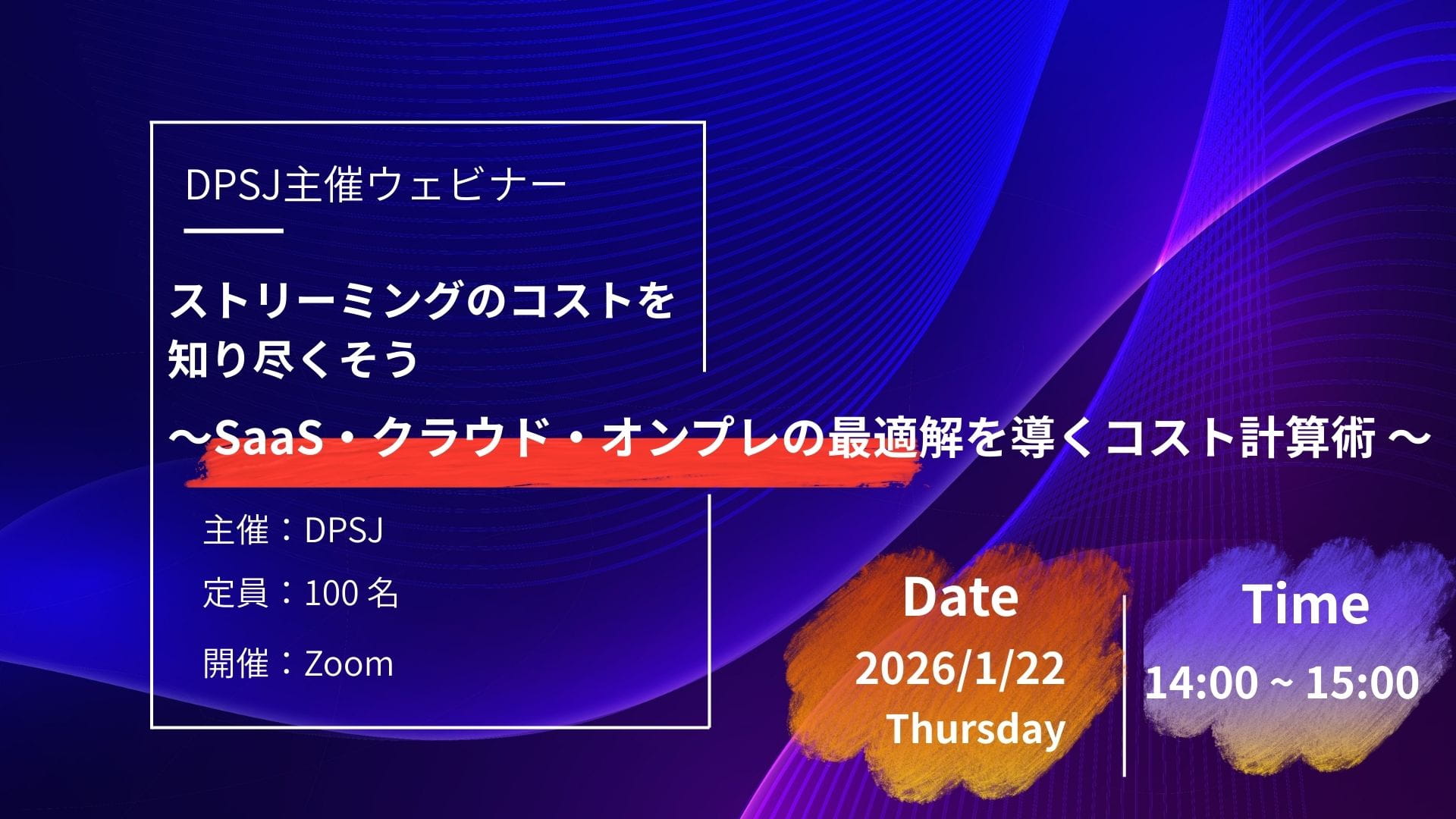 DPSJ 1 月ウェビナー開催 :ストリーミングのコストを知り尽くそう 〜SaaS・クラウド・オンプレの最適解を導くコスト計算術 〜